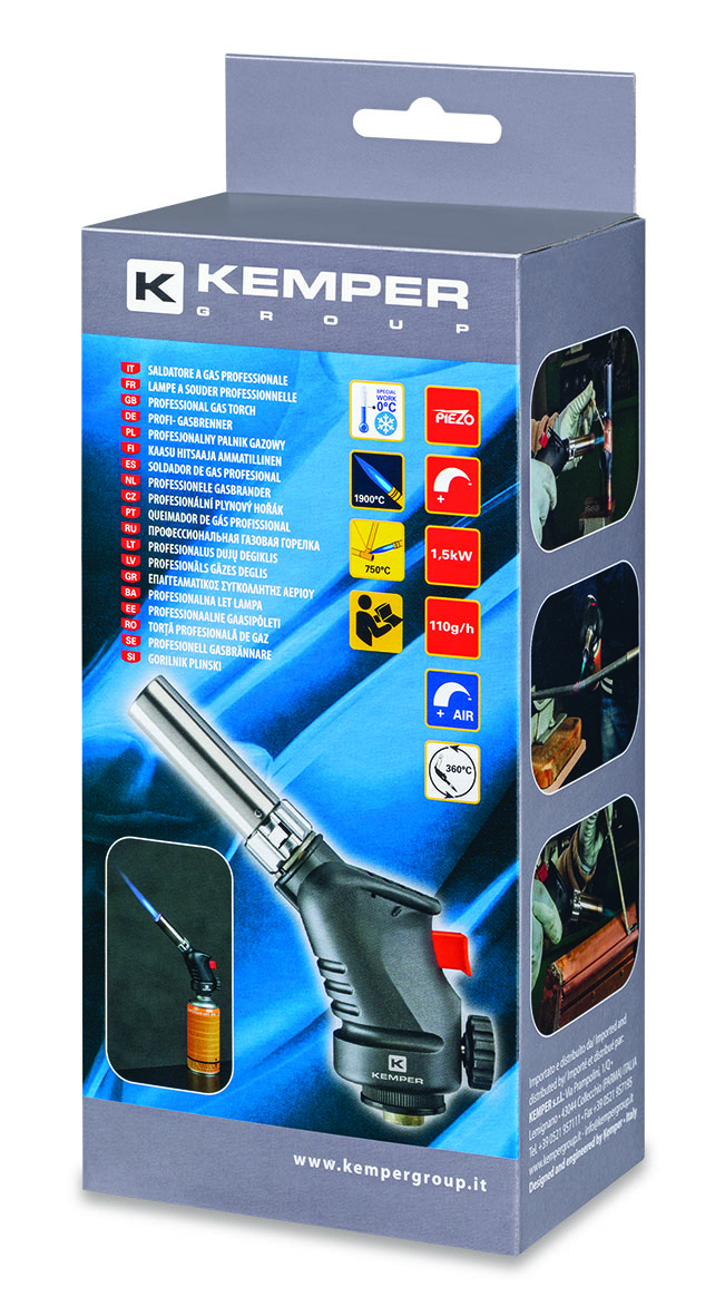 Saldatore a fiamma con accensione piezoelettrica ed impugnatura ergonomica. Regolazione flusso aria. Sistema anticapologimento per l’utilizzo a 360°. Attacco filettato 7/16″. Ideale per lavori di saldobrasatura. Utilizzabile con cartucce valvolate art. 575, 580, 580S, 581,581N, 1121F, 1126F46.