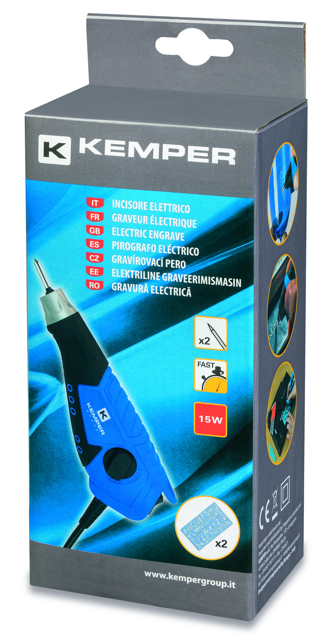 Electric engraver with 5 adjustable powers. 7200 rpm. Ergonomic rubber handle. Tungsten carbide tip. Equipped with suspension hook. Power 13W. Ideal for precision engraving on wood, metal, plastic and glass. Replacement straight and curved tungsten tips and two stencils included in the package.