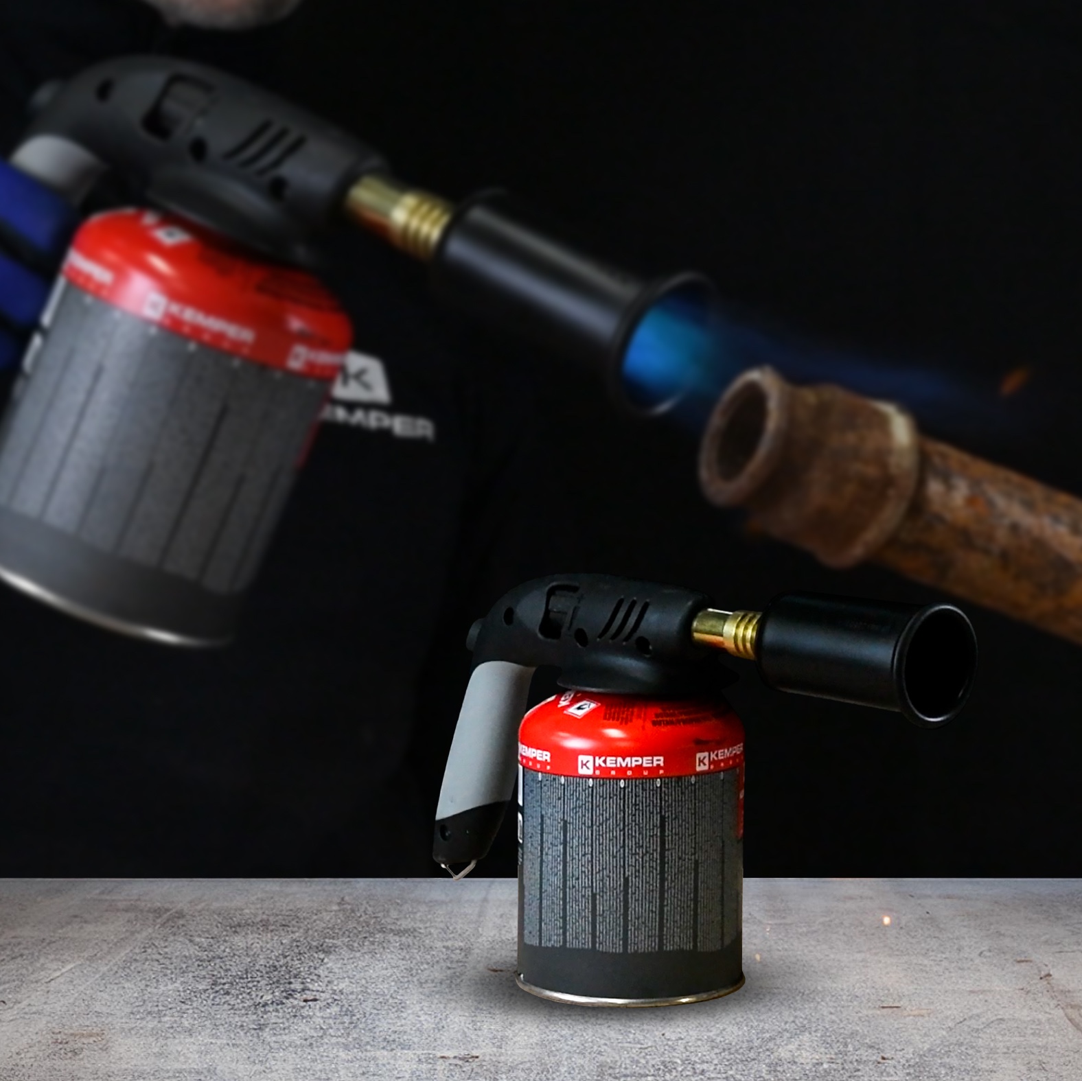 Lampe de soudage avec brûleur ø45 mm, allumage piézo, poignée ergonomique caoutchoutée et crochet de suspension amovible. Raccord fileté 7/16″. Idéal pour le brasage, le chauffage et le décapage de peinture. Peut être utilisé avec les cartouches à valve article 1126F46.